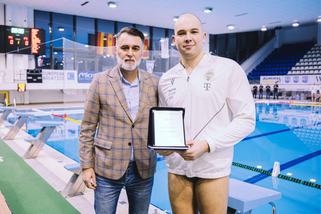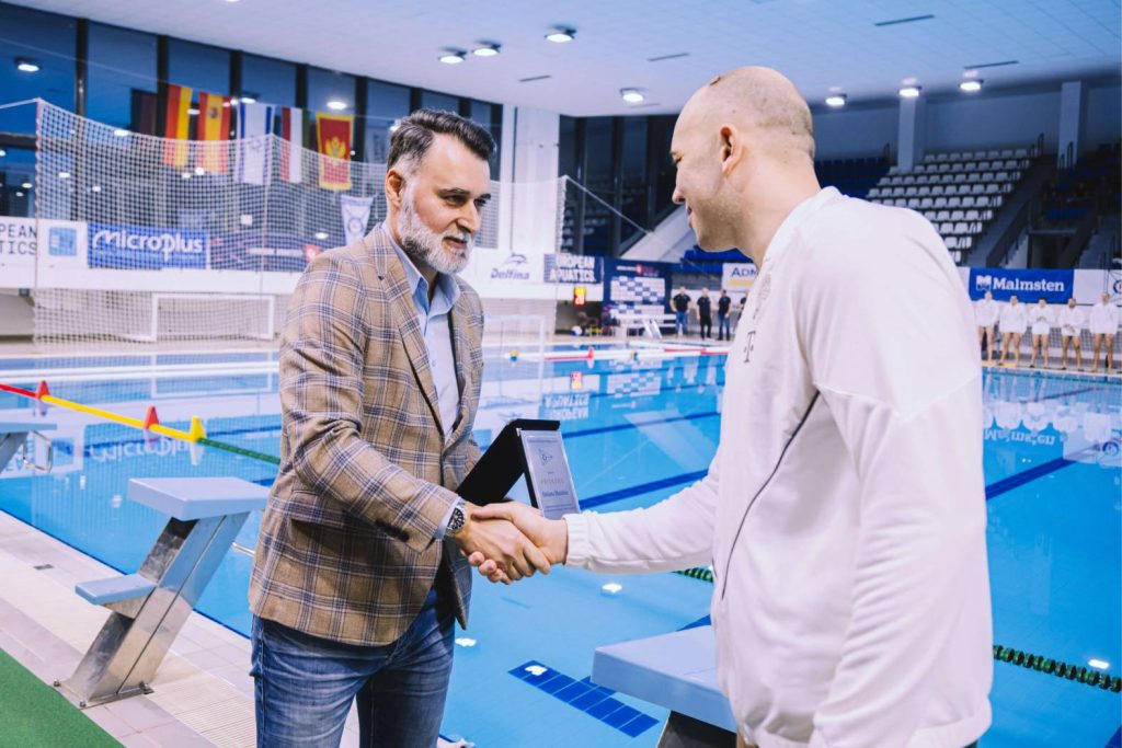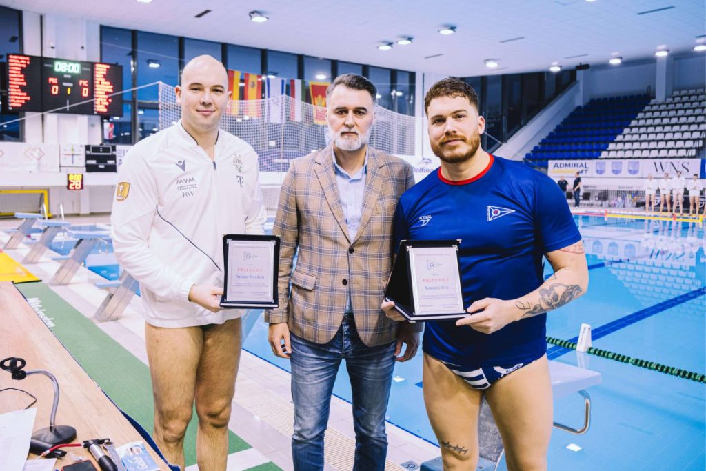 Predsjednik VPK Primorac Siniša Kovačević je sinoć, uoči početka utakmice šestog kola Lige šampiona između Primorca i Ferencvaroša, uručio plakete našim Kotoranima Nemanji Vicu i Dušanu Mandiću za izuzetan sportski uspjeh i osvajanje zlatne medalje na nedavno završenom Evropskom prvenstvu u Beogradu.
