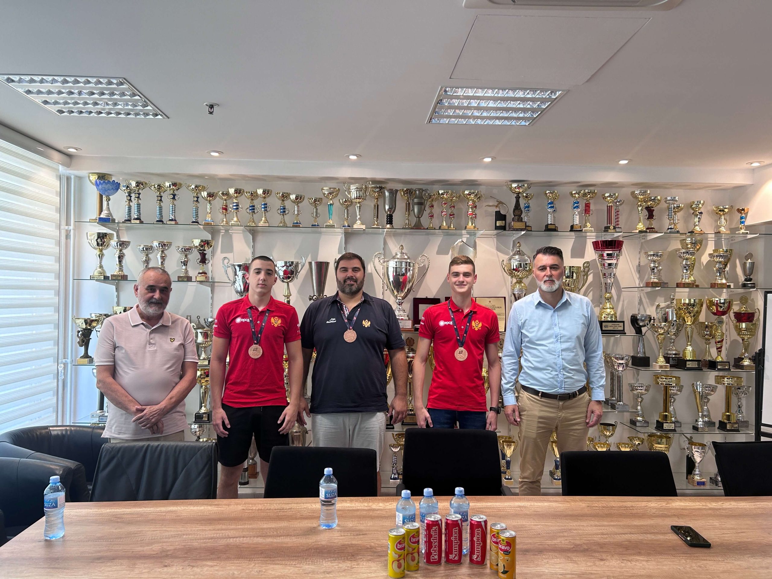 U Trofejnoj sali predsjednik i direktor VPK Primorac Siniša Kovačević i Dragan Samardžić organizovali su prijem za trenera reprezentacije Crne Gore U16 i dvojicu reprezentativaca koji nose i kapice Primorca.
